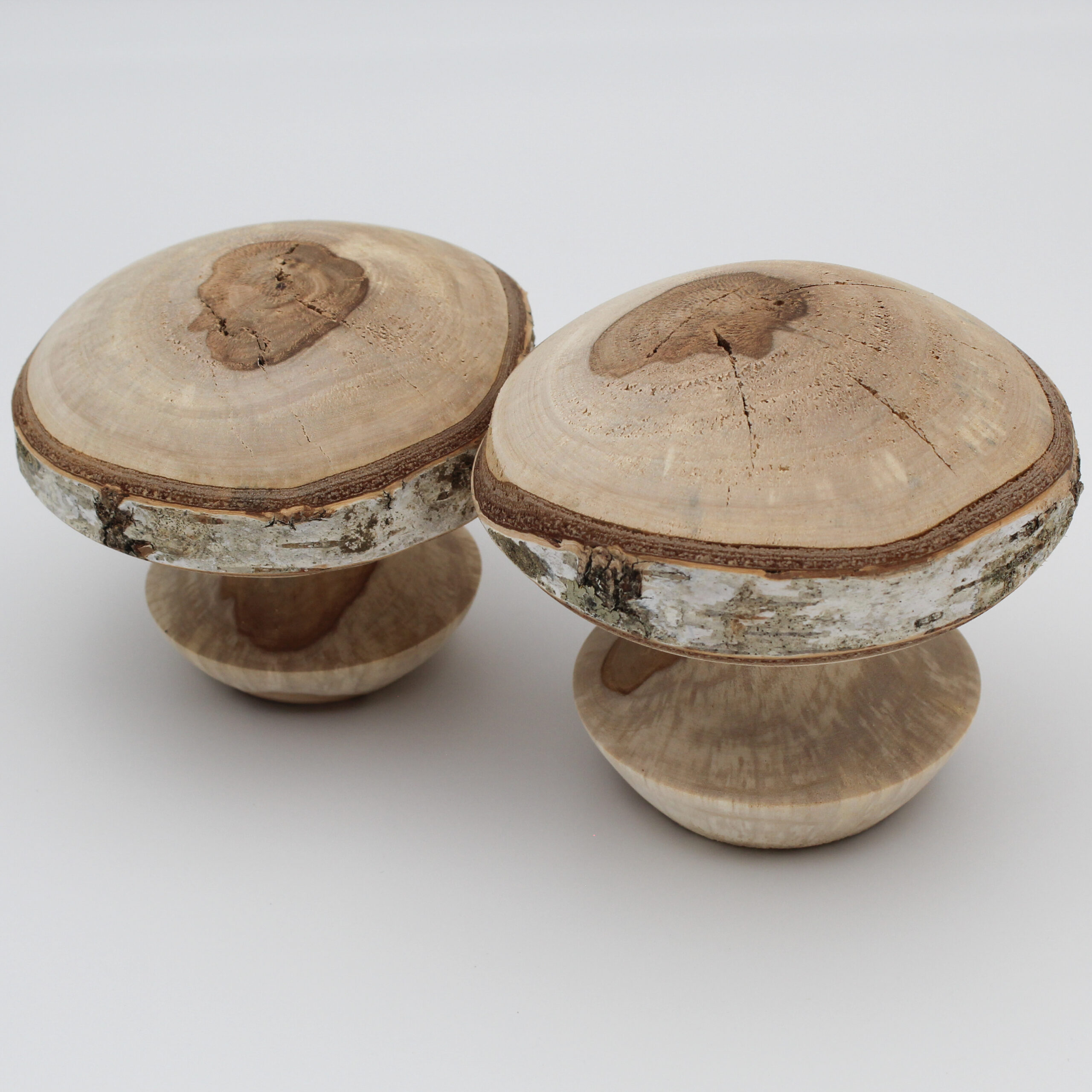 Ce duo de champignons, tourné dans un bouleau échauffé laissé brut aux motifs et contrastes uniques, met en valeur la richesse naturelle du bois. Des pièces décoratives pleines de caractère, qui apportent une note organique et contemporaine à votre intérieur.