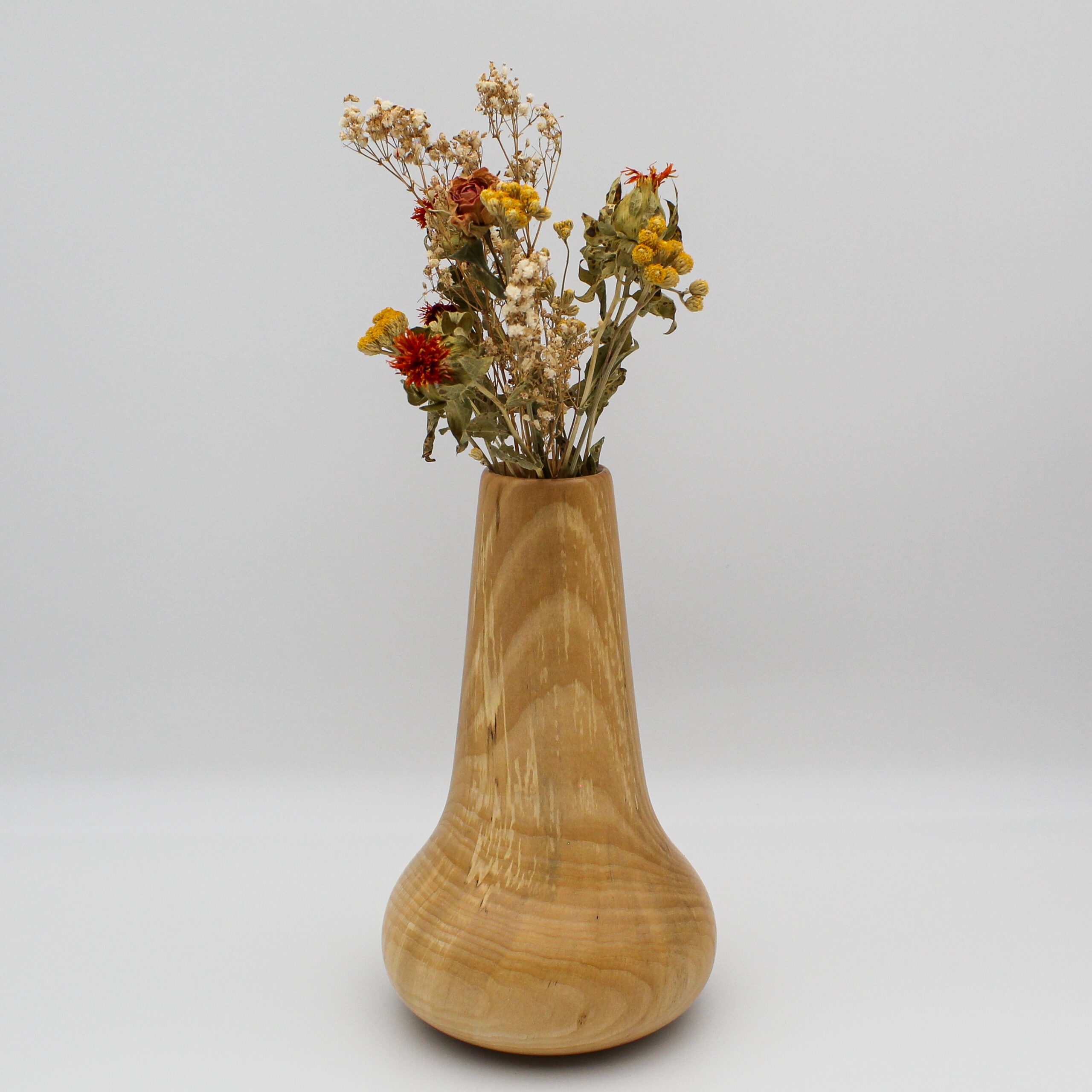 Ce grand vase en bois dévoile un veinage tout en finesse et une patine naturelle. Une pièce authentique où la beauté de l’objet et la nature se rencontrent en toute élégance.