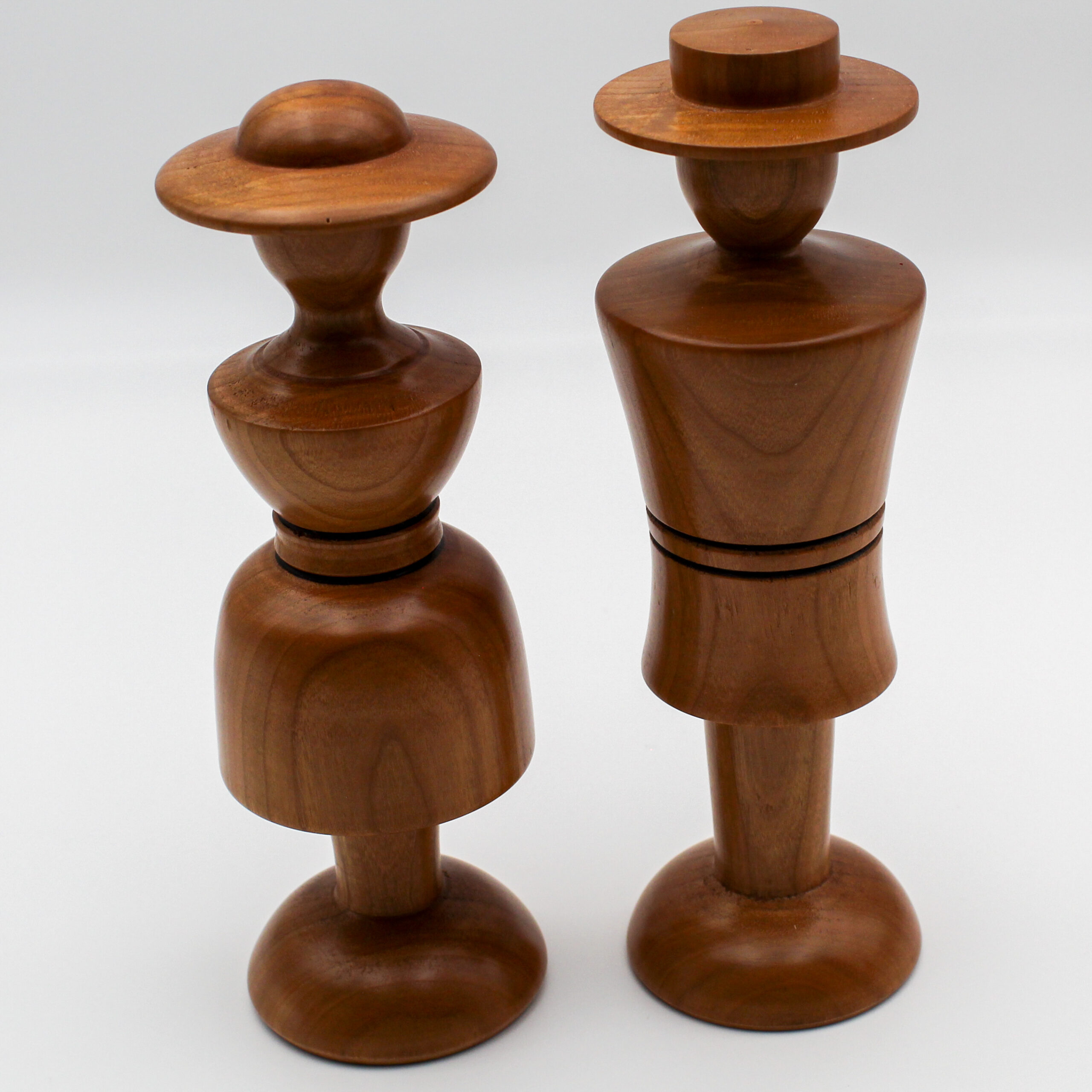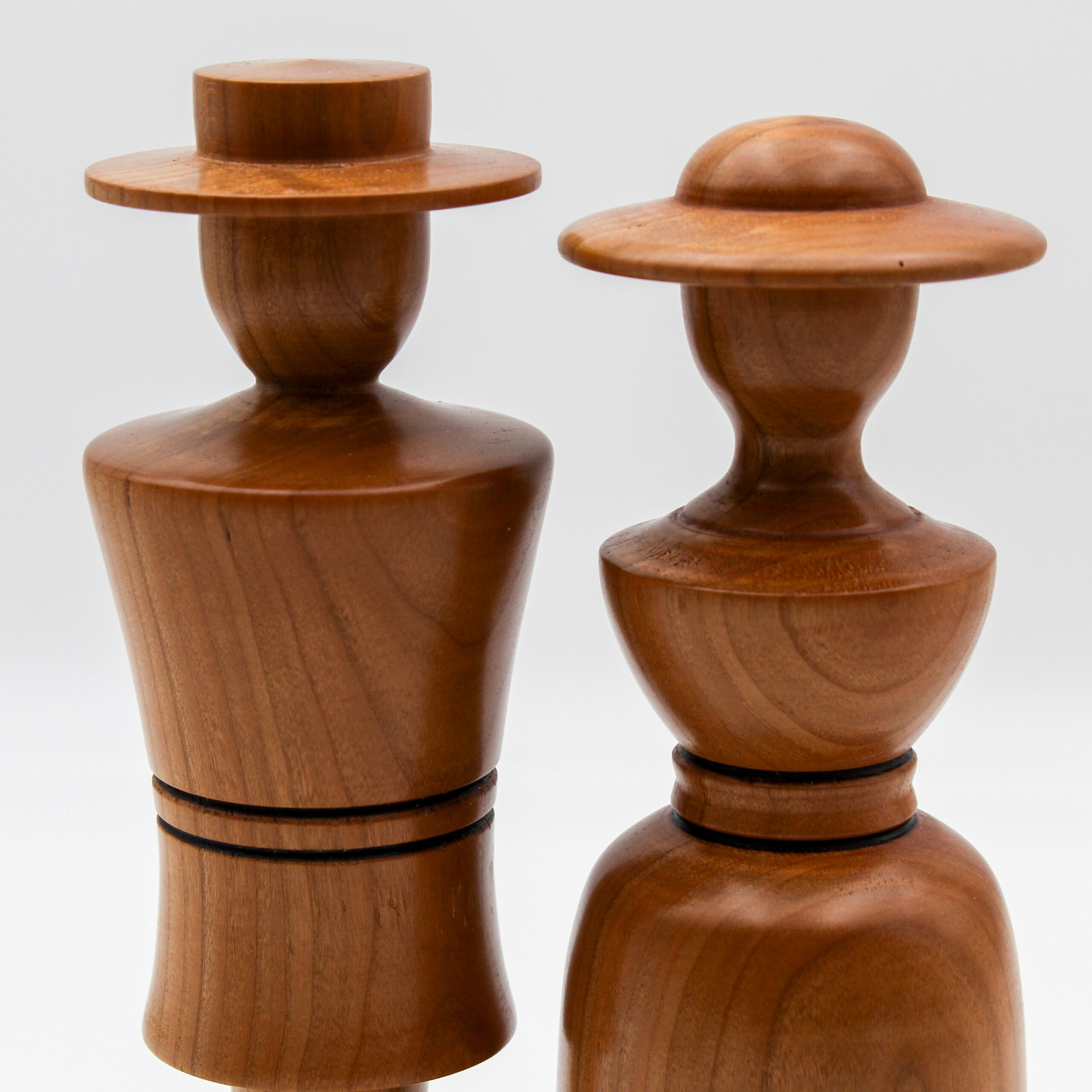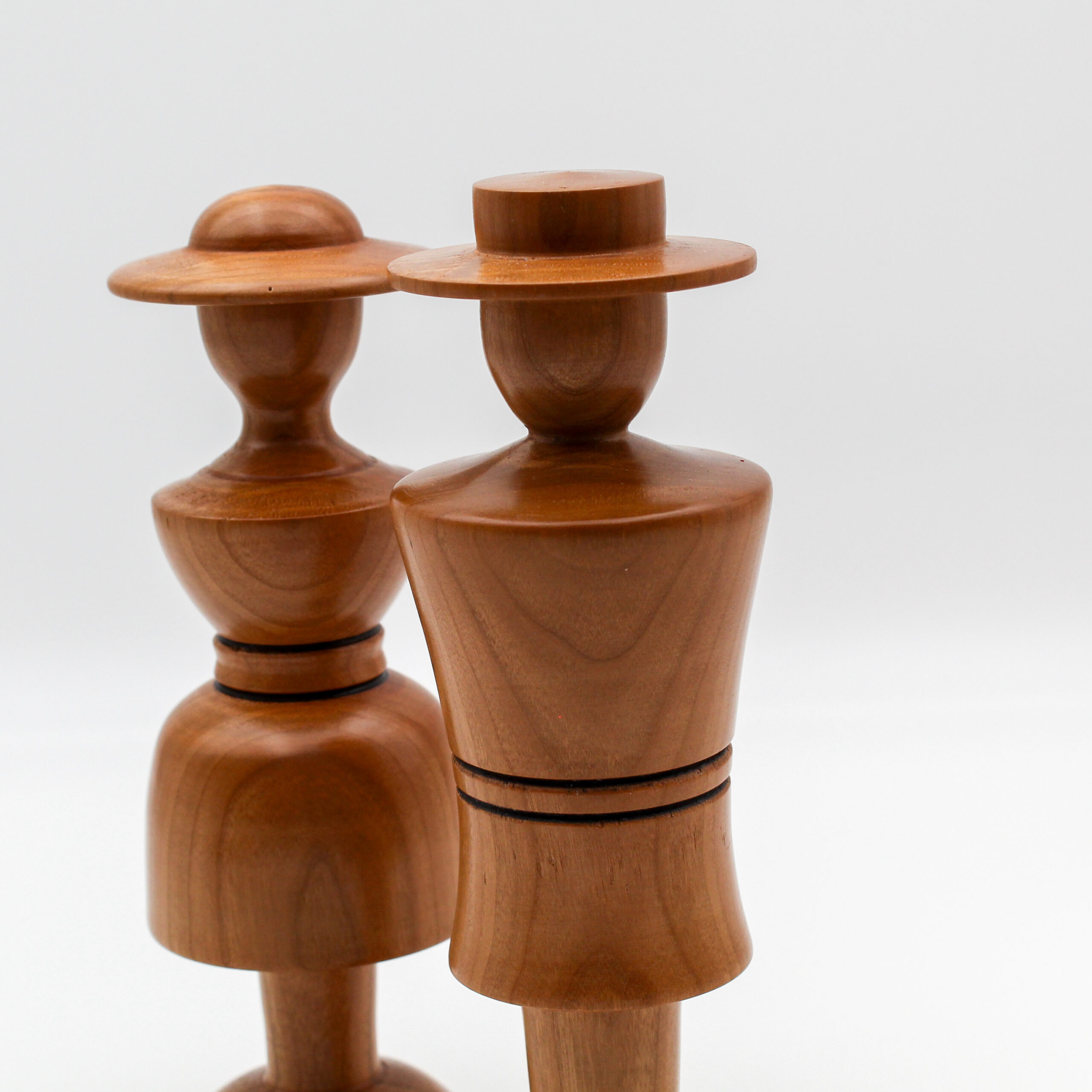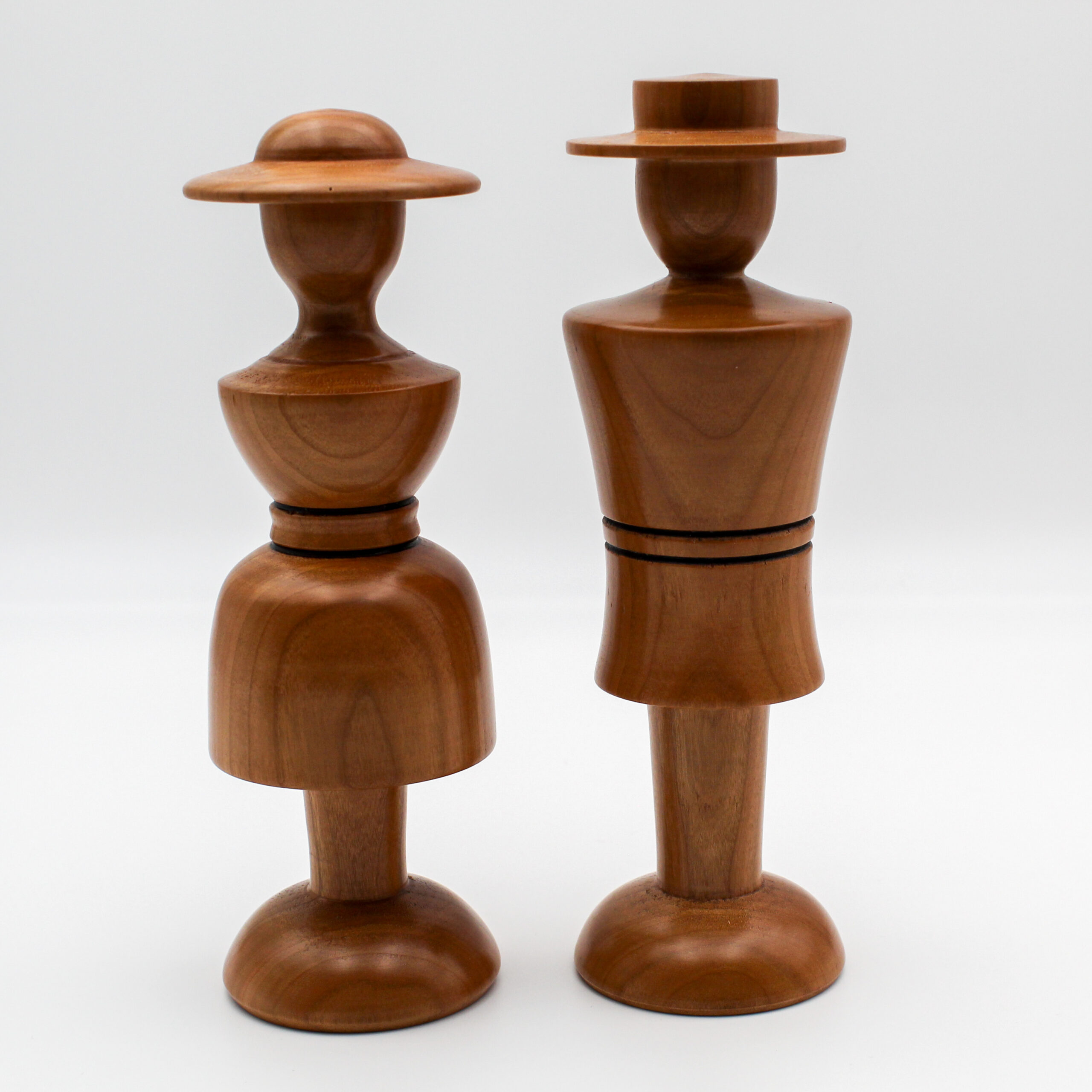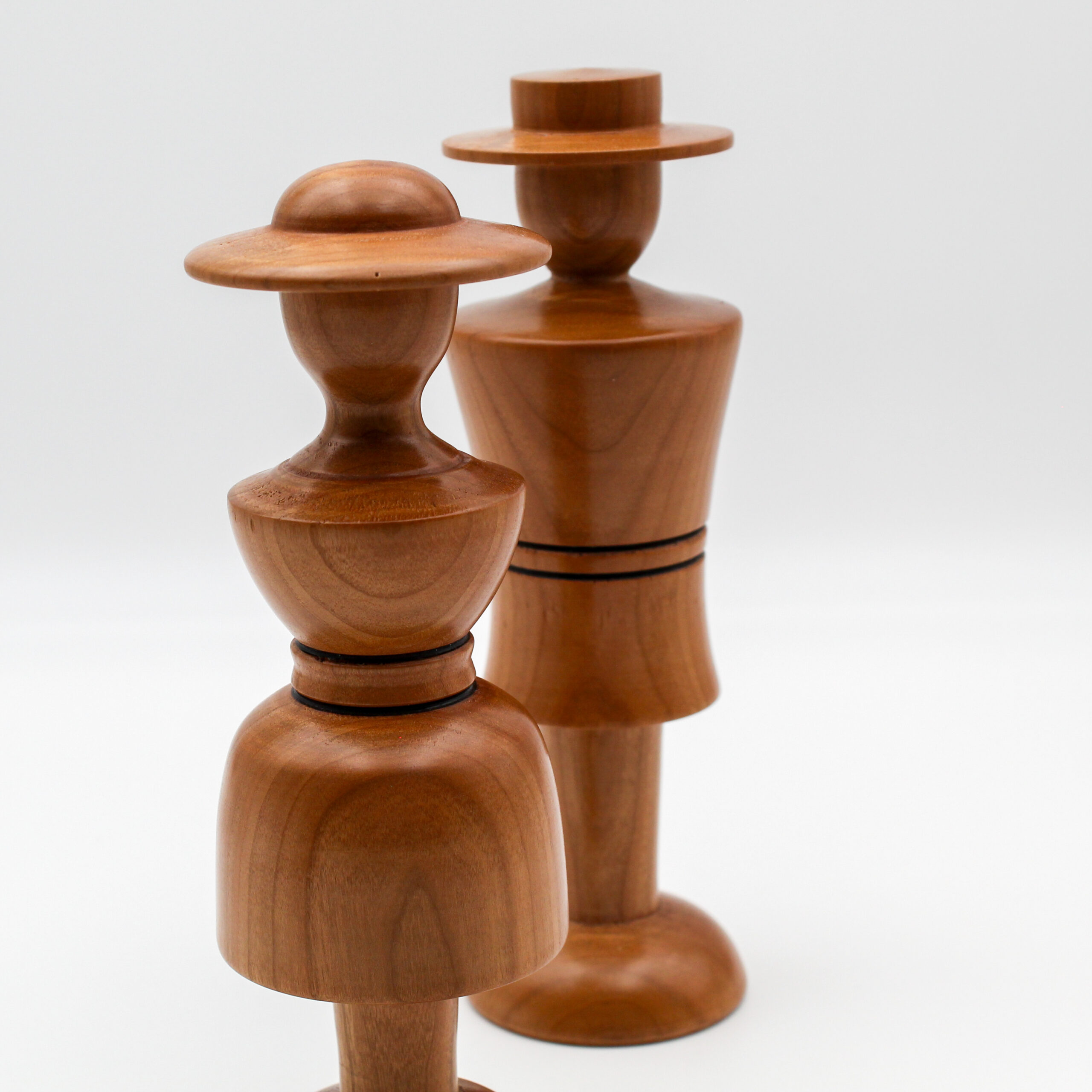 Personnages Madame et Monsieur de grande tailles façonnés en merisier : ils apporteront une touche originale et naturelle à votre décoration.