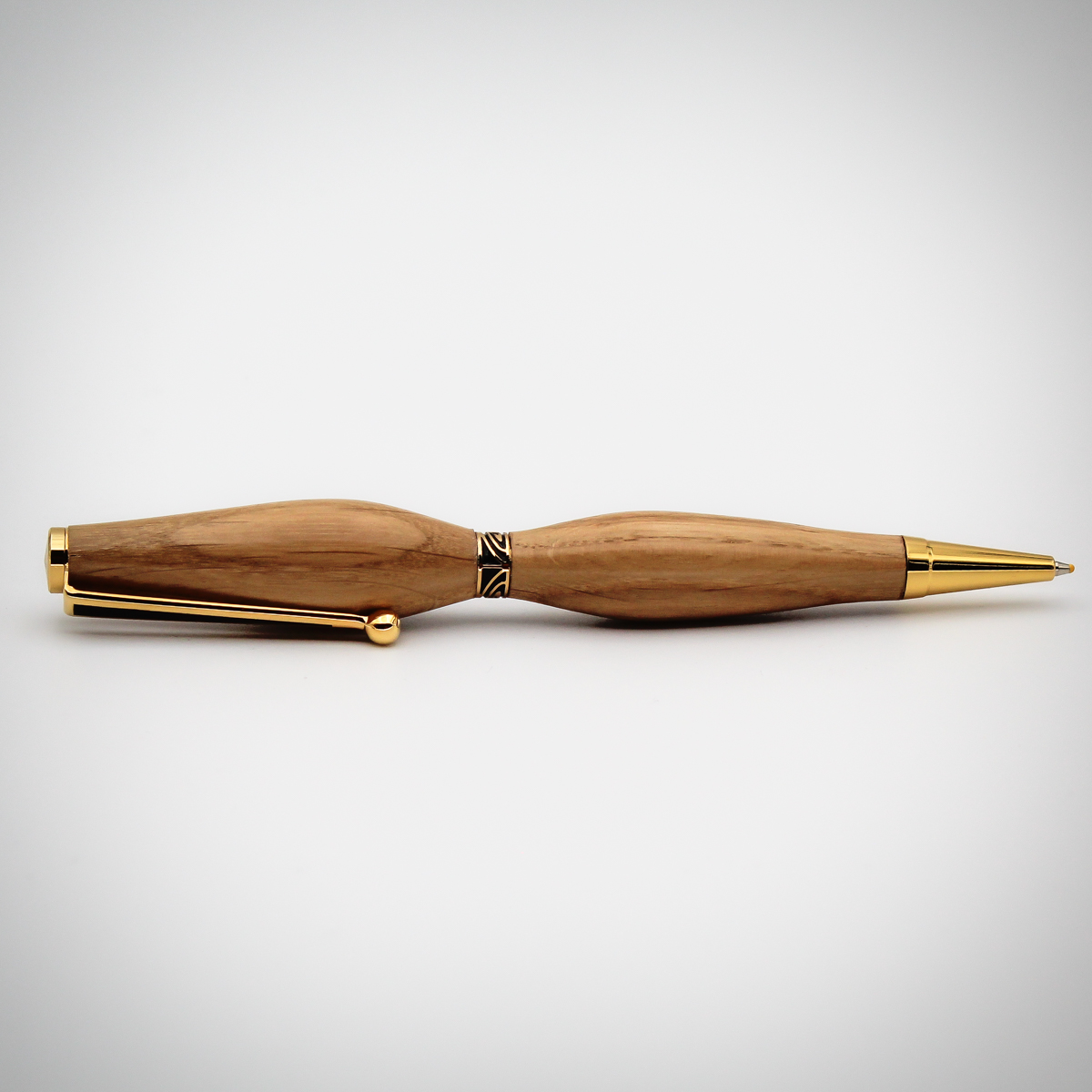 Tourné dans un chêne au veinage marqué, ce stylo allie robustesse et élégance naturelle. Un objet du quotidien sobre et raffiné, qui offre une prise en main agréable et un véritable plaisir d’écriture.Stylo à recharge. Plaqué or 24 K.